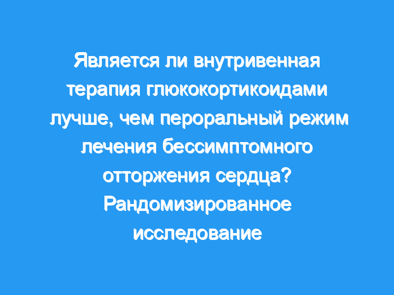 Внутривенная терапия Солу-Медролом часто назначается при эпизодах умеренного отторжения после трансплантации сердца, но ранее в рандомизированном исследовании ее не сравнивали с пероральной терапией преднизоном при бессимптомном отторжении сердца. По сравнению с пероральной терапией преднизоном введение внутривенного раствора Медрола является более дорогостоящим и ресурсоемким, и это может потребовать потери рабочего времени для пациентов и членов семьи, которые сопровождают их на лечение. Сорок один пациент с трансплантацией сердца с 43 эпизодами бессимптомного отторжения сердца средней степени тяжести был рандомизирован для получения 3-дневного внутривенного введения 1000 мг Солу-Медрола (20 эпизодов) или преднизолона в виде болюсной дозы 100 мг перорально в течение 3 дней, снижая предыдущую поддерживающую дозу в течение 14 дней (23 эпизода). Последующие эндомиокардиальные биопсии были выполнены через 2 и 4 недели. Был проведен мониторинг инфекционных осложнений и оценена стоимость двух форм терапии.