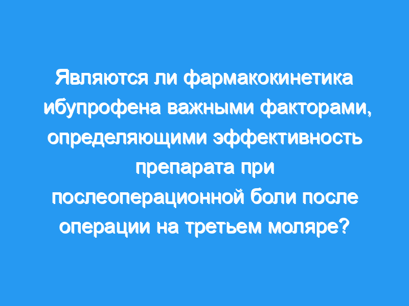 Целью настоящего плацебо-контролируемого перекрестного исследования была оценка эффективности и фармакокинетики ибупрофена после однократного приема внутрь растворимого ибупрофена в дозе 400 мг у 18 пациентов с послеоперационной болью после двусторонней операции на третьем моляре.