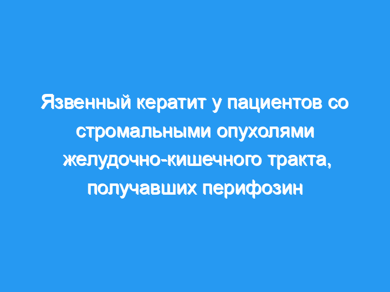 Перифозин представляет собой новый алкилфосфолипид с антипролиферативными свойствами, обусловленными ингибированием протеинкиназы В. Авторы описывают форму язвенного кератита у 5 пациентов с распространенной стромальной опухолью желудочно-кишечного тракта (GIST), включенных в исследование I/II фазы перифозина в комбинации с иматинибом. Дизайн: Серия интервенционных случаев. Участники: Пять пациентов (1 мужчина, 4 женщины) с резистентным к иматинибу метастатическим GIST, которые получали комбинацию иматиниба и перифозина перорально.