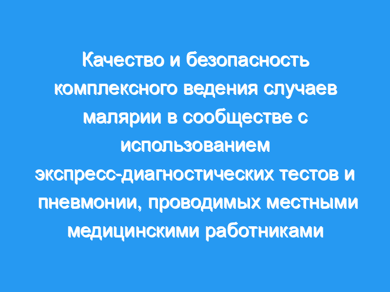 Для оценки качества и безопасности услуг общинных медицинских работников (CHWs) в сельской местности Замбии используют экспресс-диагностические тесты (RDTS) и обеспечивают комплексное лечение малярии и пневмонии. Дизайн/методы: В контексте кластерного рандомизированного контролируемого исследования двух моделей лечения малярии и/или нетяжелой пневмонии на уровне сообщества у детей в возрасте до 5 лет, CHW в группе вмешательства были обучены использованию RDTS, следовать простому алгоритму классификации и лечить малярию с помощью артеметера- люмефантрин (AL) и пневмония с амоксициллином. Были проанализированы записи о ХЗП, чтобы оценить способность ХЗП надлежащим образом классифицировать и лечить малярию и пневмонию, а также учитывать поставки. Пациенты также находились под наблюдением для оценки безопасности лечения.