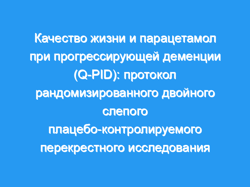 В это рандомизированное двойное слепое плацебо-контролируемое перекрестное исследование будут включены 95 пациентов с: 1) возрастом ≥ 65 лет, 2) прогрессирующей деменцией (Глобальная шкала ухудшения состояния Рейсберга 5-7) и 3) баллом QUALIDEM ≤ 70. Критериями исключения являются регулярное применение обезболивающих средств, аллергия на исследуемые препараты, тяжелая печеночная недостаточность или заболевание, употребление более 4 единиц алкоголя в день, вес менее 50 кг и/или одновременное применение флуклоксациллина. Два периода лечения по шесть недель каждый (парацетамол и соответствующее плацебо) будут разделены периодом вымывания в семь дней. Первичным результатом является влияние на качество жизни (QUALIDEM и DS-DAT), а вторичным результатом является влияние на психоневрологические симптомы, функцию ADL, боль, зависимость от ухода и (изменение) использование психотропных и обезболивающих препаратов (все по сравнению с исходным уровнем).