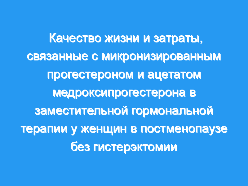 Целью этого исследования было сравнить качество жизни (QOL), симптомы менопаузы и затраты, связанные с использованием натурального микронизированного прогестерона (MP), по сравнению с MPA в качестве дополнительной терапии к эстрогену при заместительной гормональной терапии у женщин в постменопаузе.