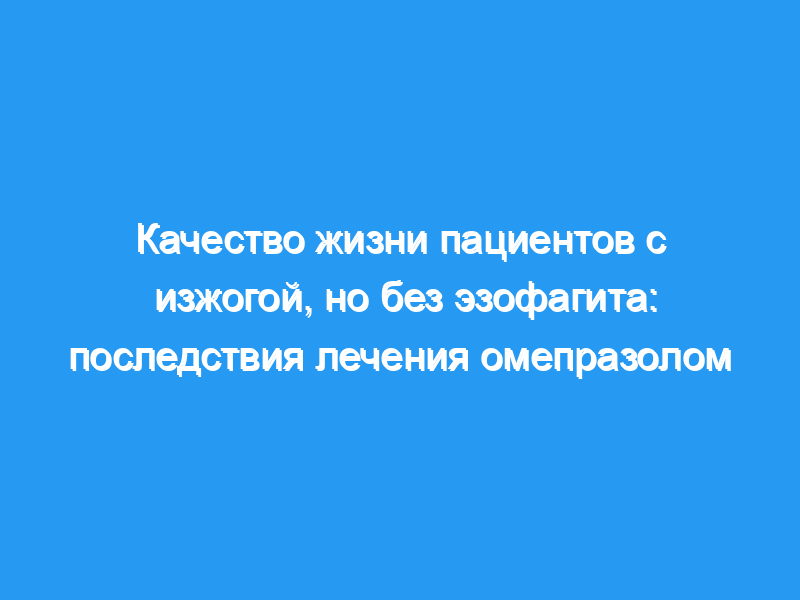 Поскольку улучшение качества жизни (КЖ) является важной терапевтической целью у пациентов с изжогой, но без эзофагита, целью настоящего исследования было сравнить влияние омепразола в дозе 20 мг или 10 мг ежедневно с плацебо на КЖ у пациентов с изжогой в качестве преобладающего симптома.