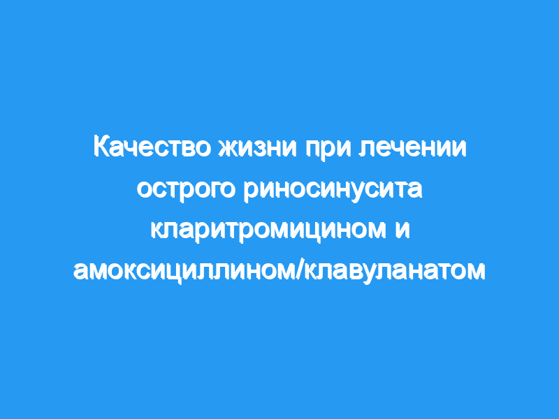 Кларитромицин и амоксициллин/клавуланат (А/С) являются антибиотиками первой линии, используемыми для лечения неосложненного острого риносинусита (ОРС). В этом исследовании изучалась эффективность кларитромицина и А/К для лечения ОРС в зависимости от качества жизни пациента (КЖ). План исследования: Двадцати двум пациентам с неосложненным ОРС было случайным образом назначено лечение (однократное слепое по отношению к исследователю) с использованием кларитромицина или В/С. Пациенты прошли обследование для подтверждения диагноза и результатов лечения при первоначальном скрининге и по завершении приема антибиотиков (диагноз + 14 дней и 28 дней). Качество жизни оценивали с помощью Опроса об исходах аллергии (AOS), вопросника о качестве жизни при риноконъюнктивите (RQLQ), Краткого опроса 36 (SF-36), мгновенного опроса о тяжести симптомов из шести пунктов (SSS-6) и Визуальной аналоговой шкалы (VAS). Обследования были завершены во время постановки диагноза, по завершении приема антибиотиков и через 28 дней после постановки диагноза.