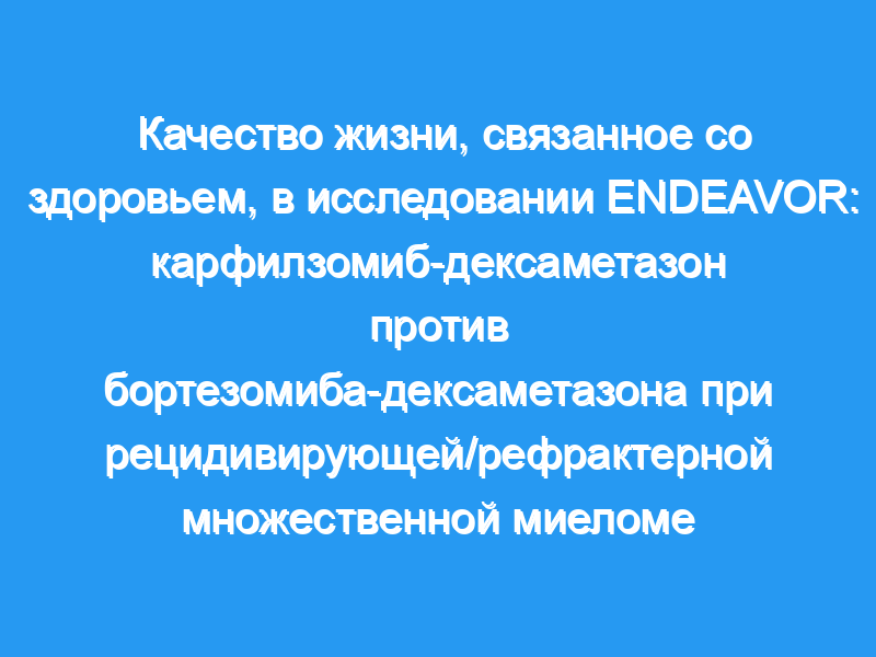 Мы изучили влияние карфилзомиба-дексаметазона (Kd56) по сравнению с бортезомибом-дексаметазоном (Vd) на качество жизни (HR-QoL), связанное со здоровьем, у пациентов с рецидивирующей/рефрактерной множественной миеломой (ММ) из исследования ENDEAVOR.