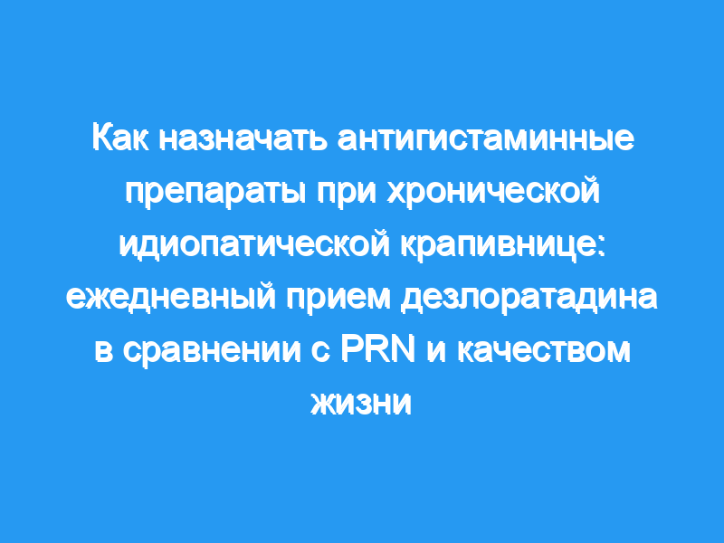 Хроническая идиопатическая крапивница (КИУ) ухудшает качество жизни (КЖ). В настоящее время не существует единого мнения относительно того, как следует принимать H(1)-антигистаминные препараты второго поколения (доказано, что они контролируют симптомы CIU) в течение длительного времени: в качестве ежедневного лечения или только при возвращении симптомов (PRN). Мы стремились определить, какой режим улучшает или лучше поддерживает качество жизни в CIU: дезлоратадин (DL) ежедневно или PRN.