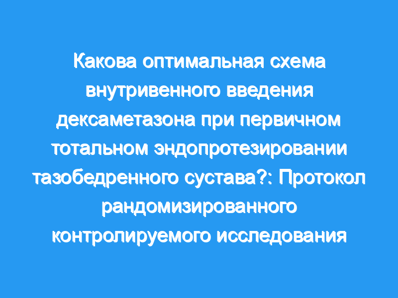 В ряде недавних исследований изучалась оптимальная дозировка и сроки применения дексаметазона при тотальном эндопротезировании тазобедренного сустава (THA), но результаты были противоречивыми. Поэтому мы разработали рандомизированное контролируемое исследование для поиска оптимальной внутривенной дозы дексаметазона для лечения ранних послеоперационных болей после ТГА.