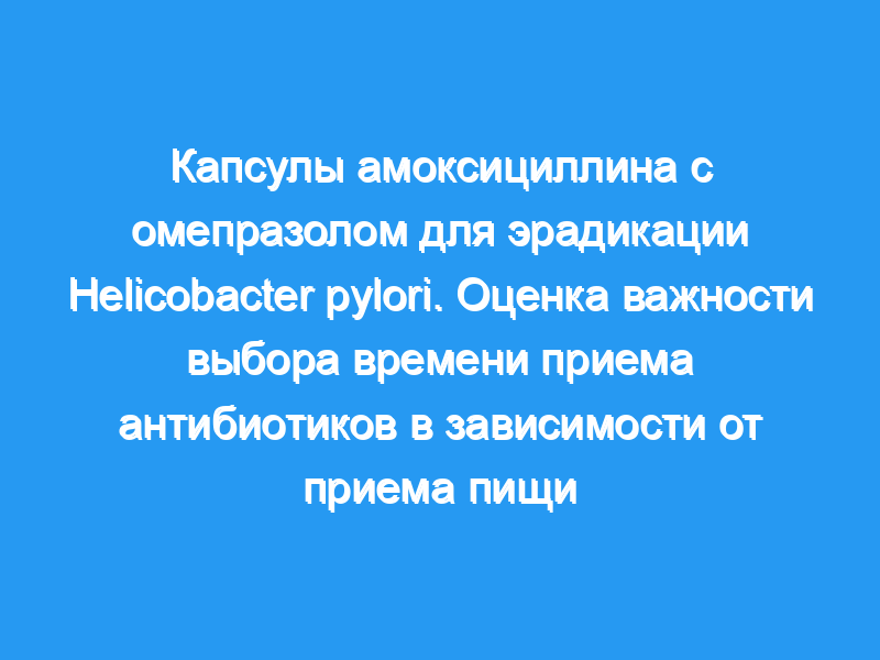 Время приема антибиотиков в зависимости от приема пищи не имеет значения при лечении инфекции H. pylori с помощью этой схемы приема капсул амоксициллина и омепразола. Однако хорошая комплаентность является важным фактором, определяющим успех лечения.