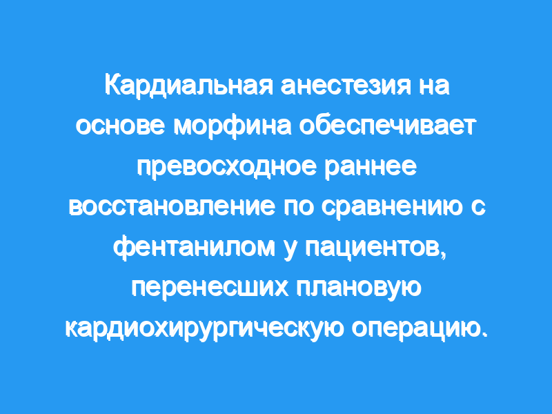 Экспериментальные и клинические данные свидетельствуют о том, что морфин обладает уникальными кардиопротекторными и противовоспалительными свойствами. В этом клиническом исследовании мы стремились определить, влияет ли выбор интраоперационного опиоида (морфина или фентанила) на раннее восстановление после операции на сердце.