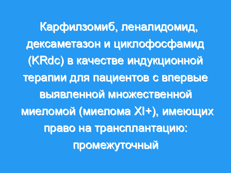 Комбинация KRdc хорошо переносилась и была связана как с увеличением процента пациентов, достигших, по крайней мере, очень хорошего частичного ответа, так и со значительным преимуществом PFS по сравнению с триплетной терапией на основе иммуномодулирующих агентов. Пробная регистрация: ClinicalTrials.gov ISRCTN49407852.