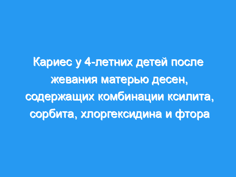 Оценить влияние использования матерью жевательных резинок, содержащих комбинации ксилита, сорбита, хлоргексидина и фтора, на распространенность кариеса в группе 4-летних детей матери. Дизайн исследования: Рандомизированное контролируемое исследование.