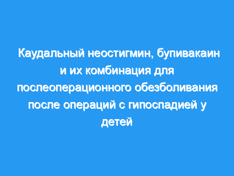 Выводы: Каудальный неостигмин 2 мкг/кг обеспечивает послеоперационную анальгезию, сравнимую с каудальным бупивакаином у детей, перенесших операцию по восстановлению гипоспадии.
