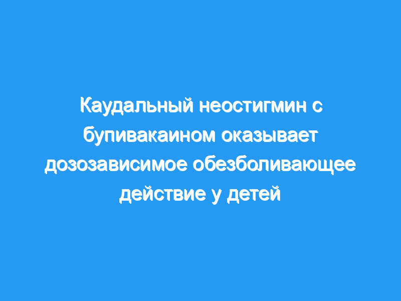 Каудальный неостигмин (2, 3 и 4 microg.kg (-1)) с бупивакаином вызывает дозозависимый анальгетический эффект (примерно 16-17 часов) у детей по сравнению с теми, кто получал только каудальный бупивакаин (примерно пять часов), и снижение послеоперационного потребления спасательных анальгетиков без увеличение частоты побочных эффектов.