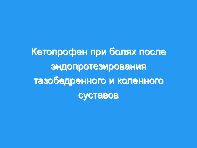 Уменьшение боли через 1 ч после начала обезболивания составило в среднем 44% (SEM 17%) в экстрадуральной группе морфина и 54% (9%) в группе кетопрофена (ns). Не было никаких существенных различий между группами в показателях боли, уменьшении боли и потребности в дополнительном обезболивании (например, парацетамол). Налоксон в дозе 5 мкг/кг-1 ч-1 потребовался для гиперкапнии, превышающей 6,0 кПа, у трех пациентов в группе экстрадурального морфина (по сравнению с ни одним в группе кетопрофена, ns). Не было никаких различий между группами в побочных эффектах, за исключением задержки мочи, которая была более частой в группе экстрадурального морфина (P <, 0,05). Поскольку различий между внутривенным введением кетопрофена и экстрадурального морфина было немного, мы пришли к выводу, что кетопрофен может быть эффективной альтернативой экстрадуральному морфину после эндопротезирования тазобедренного и коленного суставов.