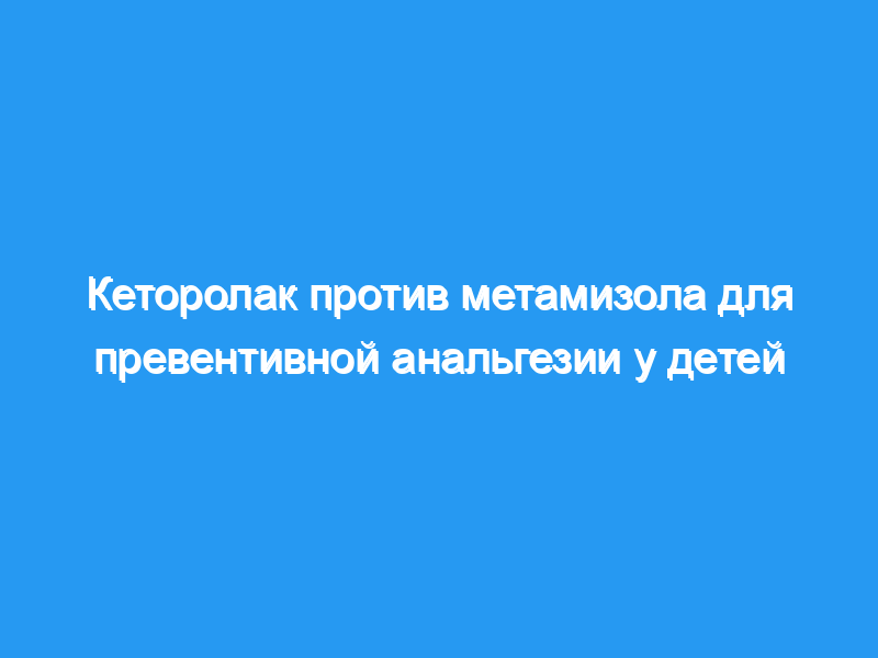 Профилактическую анальгезию, производимую кеторолаком и метамизолом, оценивали в ходе проспективного исследования, рандомизированного в две группы.