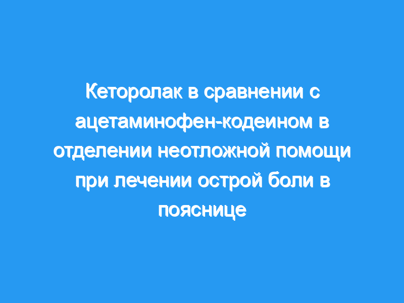 Основываясь на сопоставимой эффективности и превосходном профиле побочных эффектов, кеторолак был предпочтительнее ацетаминофена с кодеином для лечения острой боли в пояснице при ЭД..