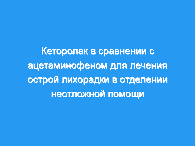 Целью этого предварительного исследования было сравнить ацетаминофен с кеторолаком для лечения пациентов с лихорадкой в отделении неотложной помощи (ED).