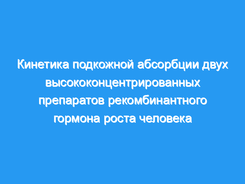 Сравнивали относительную биодоступность двух высококонцентрированных (12 МЕ/мл) препаратов биосинтетического гормона роста человека (GH), вводимых подкожно. Дизайн: Рандомизированное перекрестное исследование. Обычная терапия ГР была отменена за 72 часа до каждого периода исследования. Между периодами исследования был период вымывания не менее четырех недель.