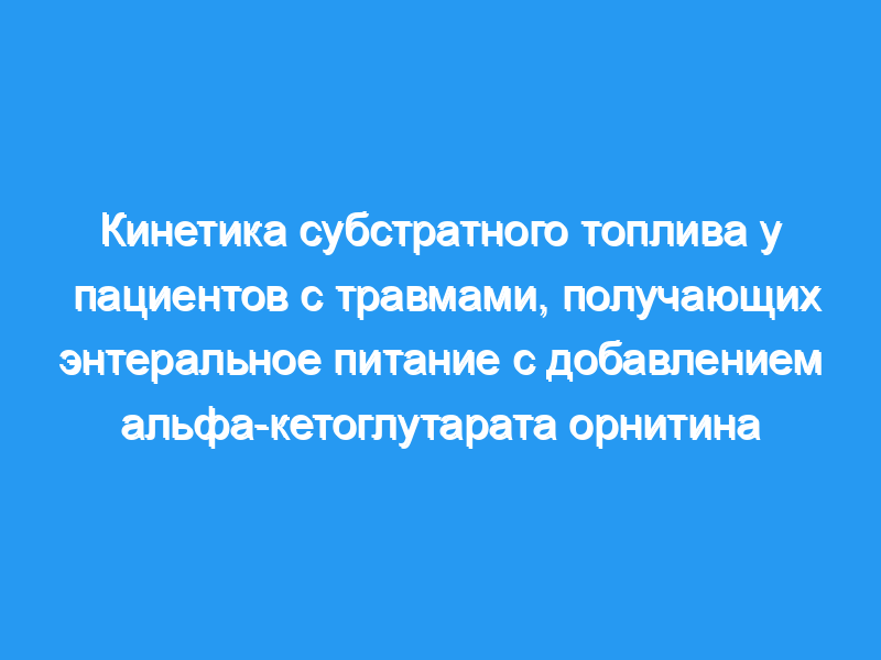 Четырнадцать взрослых пациентов с множественными травмами, у которых был высокий уровень катаболизма и были изучены гиперметаболические свойства. Белок всего организма ((15) N глицин), жир (2-этапная инфузия глицерина) и глюкоза ((3 часа) глюкоза) кинетику (t/o) и параметры плазмы измеряли (А) в течение 48-60 ч после травмы перед началом питательной поддержки, а затем (Б) после 4 дней энтерального введения. кормление. Группа A (n = 7, контроль) получала определенную энтеральную формулу (две калории, в 1,4 раза больше калорий пчелиных), а группа B (n = 7, OKG) получала ту же изонитрогенную диету, заменив 2,62 г/сут из энтеральной диеты на OKG-N (20 г OKG/ сут). РЕЗУЛЬТАТЫ (Среднее значение +/-SEM): Оборот белка значительно (P<,==0,05) увеличился у пациентов, получавших OKG (4,68+/-0,15 против 3,90+/-0,23 г/кг/день), а оборот глицерина уменьшился (0,87+/-0,16 против 1,46+/-0,16, микромоль/кг/мин). Оборот глюкозы не изменяется. Значительное (P<,== 0,05) повышение уровня циркулирующих в плазме гормонов (инсулин, 44,2+/-8,4 против 15,7+/-5,0 ед/мл, гормон роста 1,68+/-0,33 против 0,92+/-0,16 нг/мл и IGF-1, 106+/-13 против 75+/-18, нг/мл) и свободные аминокислоты (глютамин, 383+/-20 против 306+/-25, пролин, 203+/-18 против 146+/-13 и орнитин, 164+/-27 против 49+/-5 мкмоль/л) обнаружены у пациентов, получавших ОКГ, по сравнению с для пациентов, не страдающих ОКГ.