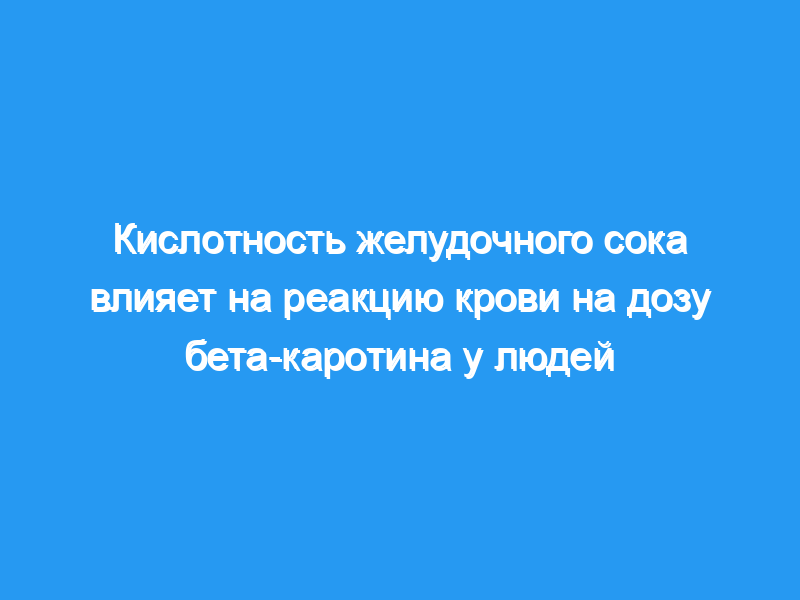 Влияние кислотности желудочного сока на реакцию крови на однократную дозу 120 мг бета-каротина у людей было исследовано у 12 здоровых субъектов (5 женщин, 7 мужчин) в возрасте 23-68 лет.