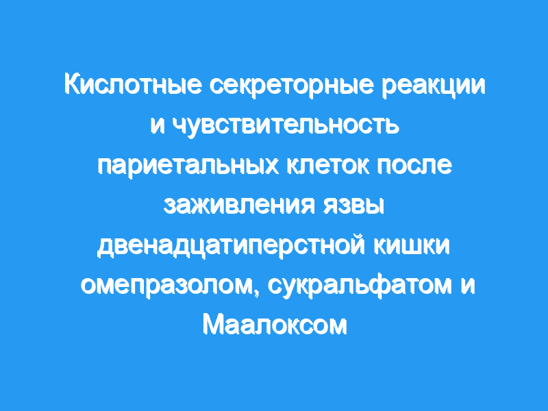 Кислотные секреторные реакции и чувствительность париетальных клеток (PCS) были изучены у 21 пациента с язвенной болезнью двенадцатиперстной кишки до и после успешного лечения омепразолом (n = 7), сукральфатом (n = 7) или Маалоксом (n = 7). Второе исследование было проведено через 3 дня после документально подтвержденного заживления и отмены лечения в группах, получавших сукральфат и Маалокс, и через 14 дней после документально подтвержденного заживления и отмены лечения у пациента, получавшего омепразол.