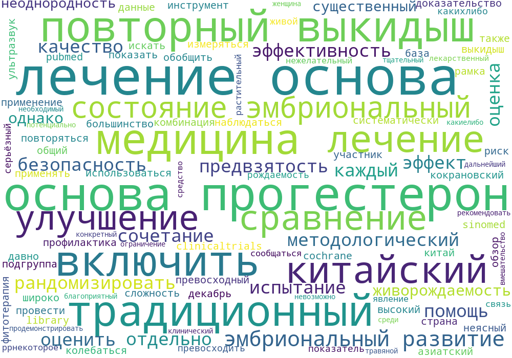 Некоторые китайские растительные лекарственные средства или в сочетании с лечением на основе прогестерона продемонстрировали потенциально благоприятный эффект в улучшении живорождаемости и состояния эмбрионального развития у женщин с повторным выкидышем. Однако из-за существенной неоднородности среди травяных вмешательств и ограничений методологического качества включенных исследований невозможно рекомендовать какие-либо конкретные CHMS для повторного выкидыша. Необходимы дальнейшие тщательные клинические испытания для оценки эффективности и безопасности CHM.