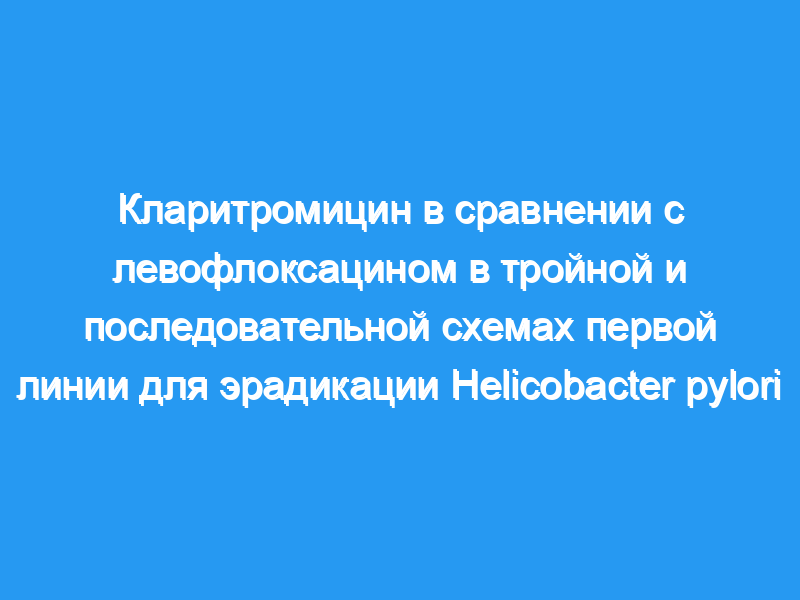 Сравнить кларитромицин и левофлоксацин в тройной и последовательной схемах первой линии. В общей сложности 460 пациентов были рандомизированы на четыре 10-дневные терапевтические схемы (115 пациентов в группе): (i) стандартная ОКА, омепразол, кларитромицин и амоксициллин, (ii) тройная ОКА, омепразол, левофлоксацин и амоксициллин, (iii) последовательная ОАКМ, омепразол плюс амоксициллин в течение 5 дней, затем омепразол плюс кларитромицин плюс метронидазол в течение 5 дней и (iv) модифицированный последовательный OALM с использованием левофлоксацина вместо кларитромицина. Эрадикация была подтверждена дыхательным тестом с 13С-мочевиной. Неблагоприятные последствия и соответствие требованиям оценивались с помощью вопросника.