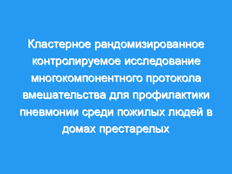 Протокол многокомпонентного вмешательства не привел к значительному снижению частоты первой рентгенологически подтвержденной пневмонии или ЛРТИ по сравнению с обычным лечением в домах престарелых. Регистрация клинических испытаний: NCT00975780.
