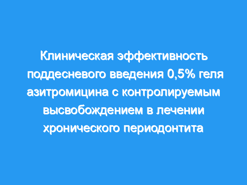 Последние разработки показывают, что местная доставка противомикробных препаратов в пародонтальные карманы может улучшить состояние пародонта. Азитромицин (АЗМ) обладает широким антимикробным спектром действия в отношении анаэробных бактерий, а также грамотрицательных палочек. Он эффективен против патогенов пародонта, таких как Aggregatibacter actinomycetemcomitans и Porphyromonas gingivalis. Таким образом, это исследование было предпринято для изучения клинической эффективности AZM в концентрации 0,5% в приготовленном самостоятельно биоабсорбируемом геле с контролируемым высвобождением в качестве дополнения к нехирургической механической терапии при лечении хронического периодонтита.
