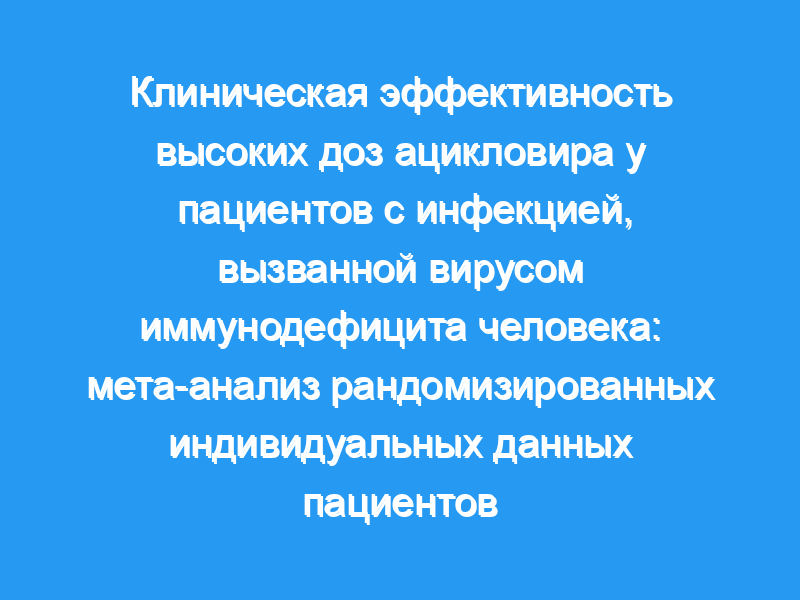 Метаанализ 8 рандомизированных исследований (1792 пациента, 2947 пациенто-лет наблюдения) показал, что ацикловир (>, or = 3200 мг/сут) обеспечивает значительное преимущество в выживаемости (P = 0,006 по логарифмическому ранговому тесту) при вирусе иммунодефицита человека (ВИЧ) инфекция.