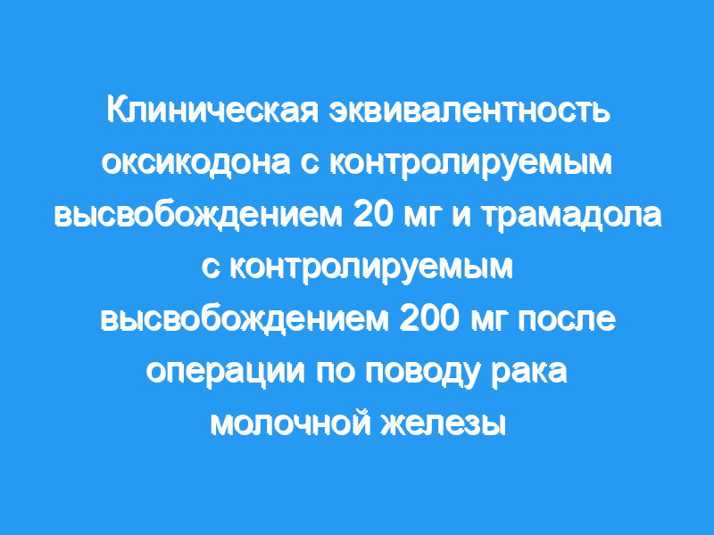 20 мг оксикодона с контролируемым высвобождением клинически эквивалентны 200 мг трамадола с контролируемым высвобождением для послеоперационной анальгезии после операции по удалению молочной железы рак.