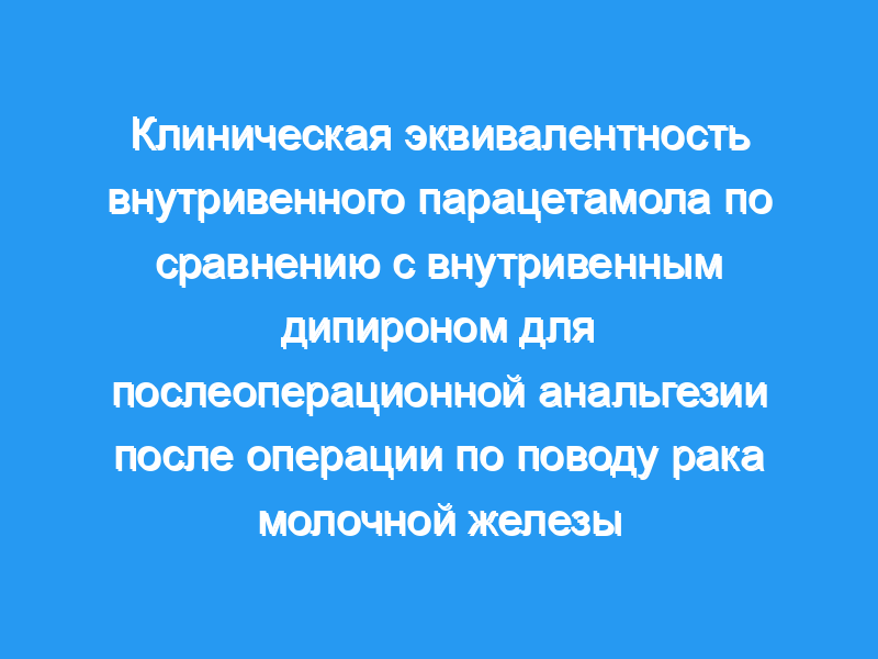 Внутривенное введение парацетамола в дозе 1 г клинически эквивалентно внутривенному введению дипирона в дозе 1 г для послеоперационной анальгезии после операции по поводу рака молочной железы.