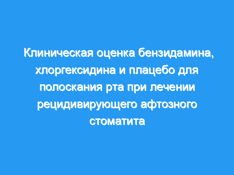 Восемнадцати пациентам с незначительным рецидивирующим афтозным стоматитом в случайном порядке давали спиртовой бензидамина гидрохлорид, водный хлоргексидин или плацебо-жидкость для полоскания рта без бензидамина.