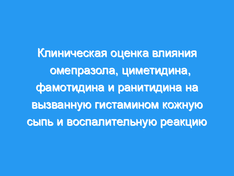 В настоящем исследовании оценивалось влияние 7-дневного введения омепразола, циметидина, фамотидина и ранитидина на индуцированную гистамином сыпь и воспалительную реакцию.