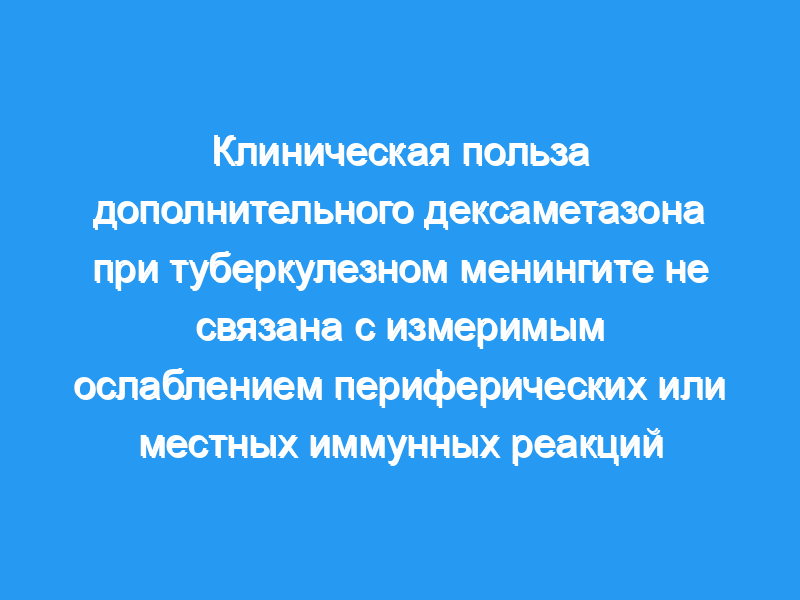 Дексаметазон, по-видимому, не улучшает выживаемость при туберкулезе за счет ослабления иммунологических медиаторов воспаления в субарахноидальном пространстве или подавления реакции периферических Т-клеток на микобактериальный Аг.