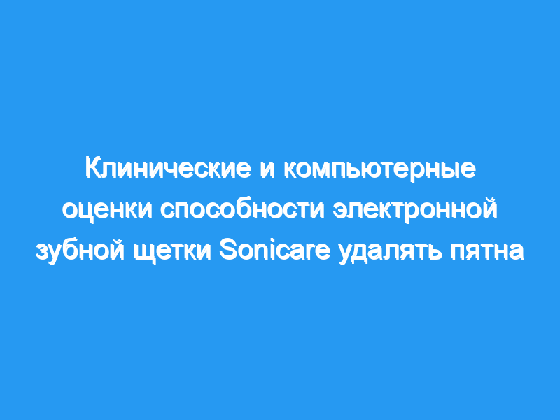Компьютерный анализ изображений был проведен на фотографических записях из исследования окрашивания CTT и показал высокую корреляцию с индексом Лобена (r = 0,82). Результаты этих двух независимых исследований показывают, что Sonicare превосходит изученные ручные зубные щетки в удалении пятен как от Peridex, так и от CTT.(АННОТАЦИЯ СОКРАЩЕНА ДО 250 СЛОВ).