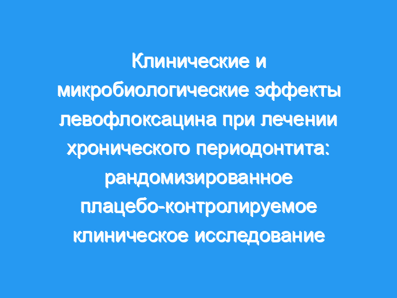 Целью настоящего исследования была оценка клинического и микробиологического эффекта системного левофлоксацина (LFX) в качестве дополнения к масштабированию и строганию корней (SRP) у пациентов с хроническим периодонтитом (ХП).