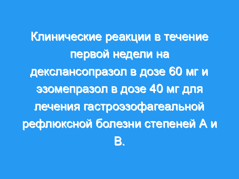 Сравнить недельные клинические эффекты однократных доз декслансопразола и эзомепразола при эрозивном эзофагите A и B.