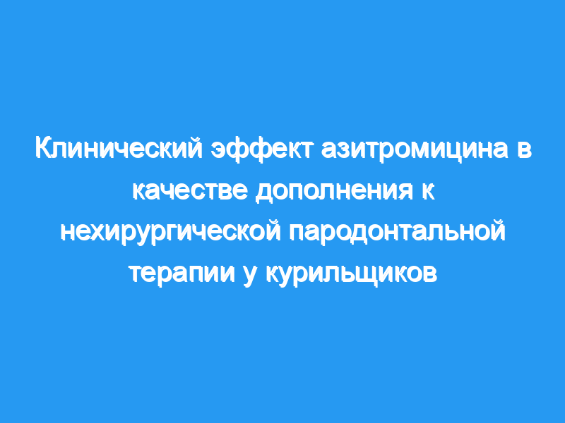 Использование AZM в сочетании с SRP повышает эффективность нехирургической пародонтальной терапии в уменьшении глубины зондирования и улучшении уровня прикрепления у курильщиков с умеренной или прогрессирующей потерей прикрепления.