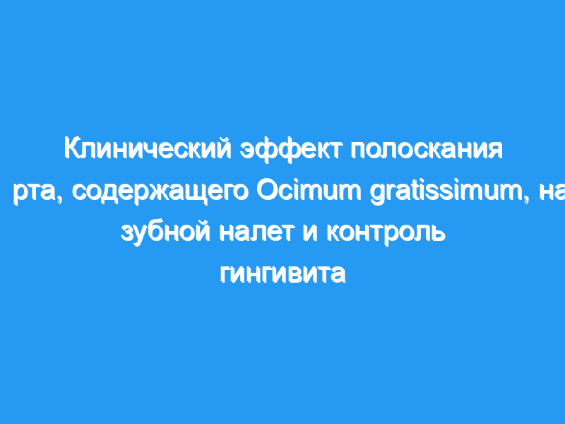 Влияние Ocimum gratissimum (Og) на уменьшение зубного налета и гингивита оценивалось в рандомизированном, параллельном и двойном слепом клиническом исследовании.
