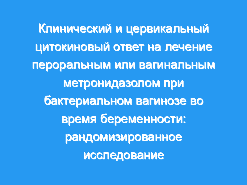 Беременные женщины с бактериальным вагинозом, диагностированным как по окрашиванию по Граму, так и по клиническим критериям, были рандомизированы для получения пероральной (n=52) или вагинальной (n=50) терапии метронидазолом. Образцы шейки матки для анализа цитокинов и вагинальной жидкости для оценки бактериального вагиноза были получены в начале и через 4 недели после лечения.