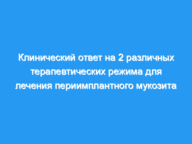 Механическая обработка, а также механическая обработка, дополненная хлоргексидином, могут быть полезны пациентам с периимплантным мукозитом. Оба метода лечения привели к уменьшению зубного налета, воспаления и глубины зондирования, а также к увеличению клинического уровня прикрепления и эффективны в подавлении или уничтожении патогенных бактерий, часто связанных с периимплантным воспалением.