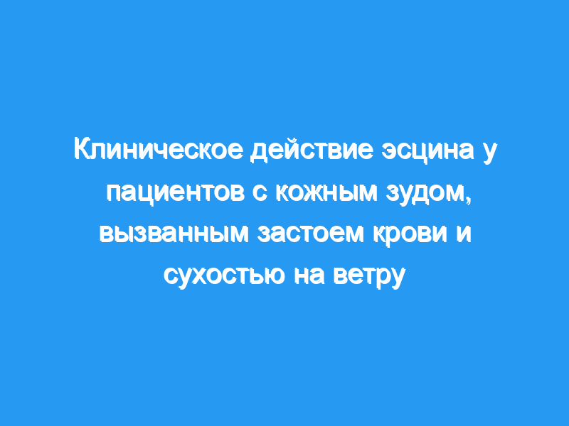 Наблюдать клинический эффект эсцина у пациентов с кожным зудом, вызванным застоем крови и сухостью от ветра, и доказать теорию о том, что «ветер следует лечить, регулируя расстройство крови, а ветер исчезает после активации крови» в традиционной китайской медицине (ТКМ). Пятьдесят один пациент был случайным образом разделен на группу, получавшую эсцин (n=30), и группу, получавшую лоратадин (n=21). Пациенты в группе, получавшей эсцин, получали эсцин в течение 4 недель (300 мг, внутривенно), а пациенты в группе, получавшей лоратадин, получали лоратадин (10 мг, ежедневно). Индекс уменьшения симптомов (SSRI) использовался для оцените степень зуда, область поражения и форму поражения до лечения, через 2 недели и 4 недели после лечения, соответственно.