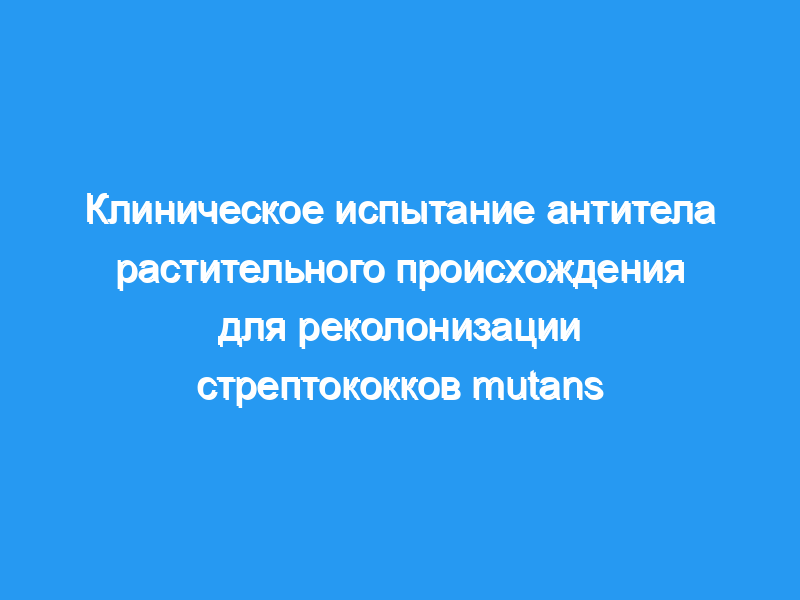 В этом двойном слепом плацебо-контролируемом клиническом исследовании была проверена безопасность и эффективность местного секреторного IgA-антитела, полученного из растений табака (plantibody), в предотвращении повторной колонизации стрептококков mutans (MS) в зубном налете человека, что было измерено с помощью образцов цельной стимулированной слюны.