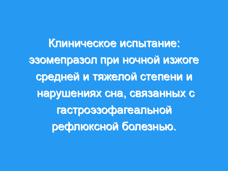 Эзомепразол в дозе 20 мг эффективен для пациентов с умеренной или тяжелой ночной изжогой и нарушениями сна, связанными с ГЭРБ, улучшая симптомы изжоги, качество сна, производительность труда и функциональность.