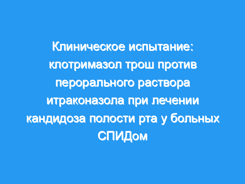 Это проспективное исследование было разработано для сравнения эффективности и безопасности перорального раствора итраконазола и клотримазола троше при лечении кандидоза ротоглотки у пациентов с синдромом приобретенного иммунодефицита (СПИД).