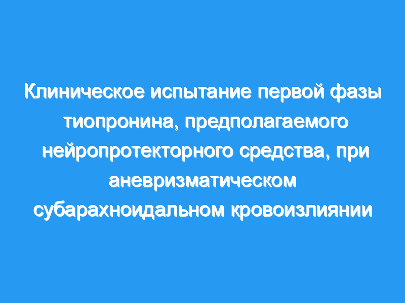 Целью этого исследования было установить безопасность применения тиопронина у пациентов с аневризматическим субарахноидальным кровоизлиянием (aSAH) в рамках подготовки к дальнейшим испытаниям его эффективности в качестве нейропротекторного средства при этом патологическом процессе.
