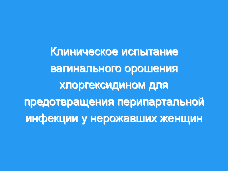 Целью этого исследования было определить, предотвращает ли внутриматочное орошение влагалища хлоргексидином перипартальную инфекцию у нерожавших женщин на >, or=32 недели беременности. Дизайн исследования: Это было двойное слепое плацебо-контролируемое рандомизированное клиническое исследование. Орошение влагалища проводили 200 мл 0,2% раствора хлоргексидина или стерильным физиологическим раствором плацебо каждые 6 часов во время родов. Первичным результатом исследования была клинически диагностированная перипартальная инфекция матери: хориоамнионит или эндометрит. Анализ проводился с намерением лечить.