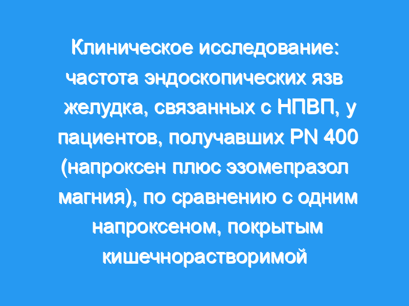 Для сравнения частоты язв желудка с PN 400 [кишечнорастворимый (EC) напроксен 500 мг и эзомепразол немедленного высвобождения 20 мг] или EC напроксен.