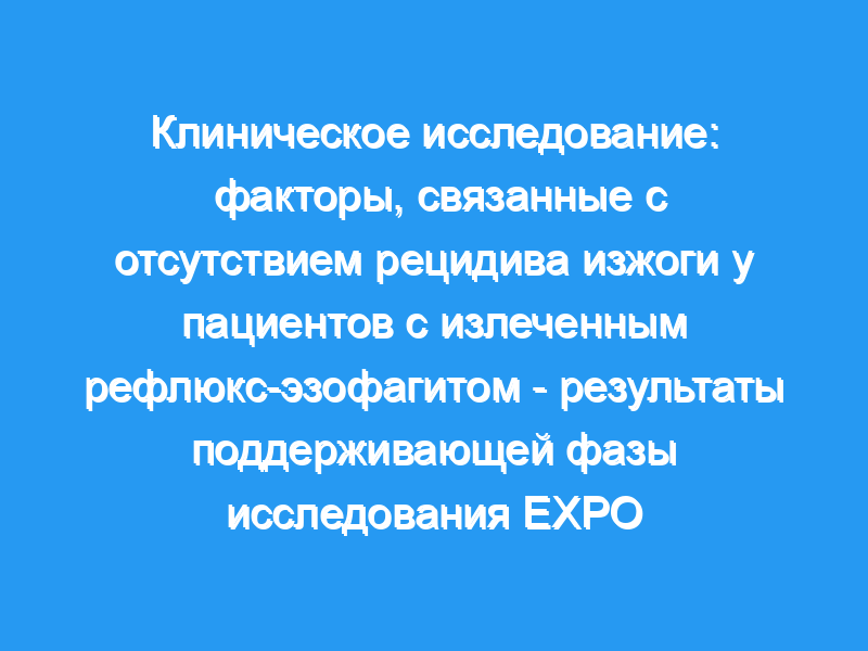 Несколько факторов предсказывают отсутствие рецидива изжоги во время поддерживающей терапии ингибиторами протонной помпы при излеченном рефлюкс-эзофагите, наиболее сильным из которых является выбор ингибитора протонной помпы. Эти результаты подчеркивают важность оптимизации кислотного контроля и выявления предикторов рецидива для эффективного долгосрочного лечения симптомов у пациентов с рефлюкс-эзофагитом.